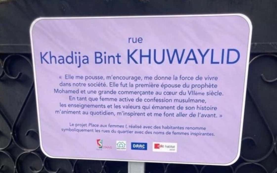 La politique française et son perpétuel déluge de polémique islamophobe. A Stains, le maire Azzédine Taïbi a pris la défense d’une initiative menée par le bailleur CDC Habitat avec l’association Mémoires croisées, le photographe Philippe Monges et des femmes de deux quartiers de Stains. L’opération conjointe s’appelle « Place aux femmes » et elle consiste à renommer symboliquement pendant quelques jours des noms de rues par des noms de femmes inspirantes. Greta Thunberg, Joséphine Baker, Fatima Mernissi, Jeanne d’Arc, la liste est longue. Mais un seul nom a soulevé une levée de boucliers du côté de l’extrême-droite. Celui de la première épouse du Prophète Muhammad, Khadija Bint Khuwaylid.Khadija, un symbole
