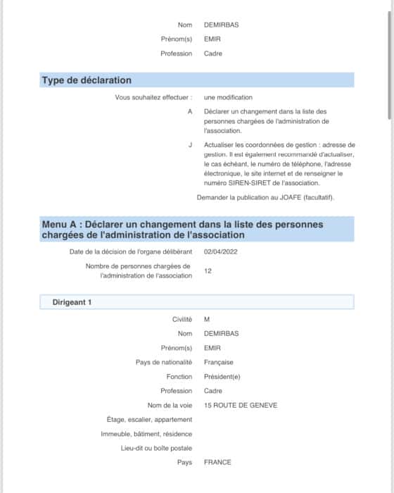 Extrait de la déclaration déposée à la préfecture. @Mizane.info