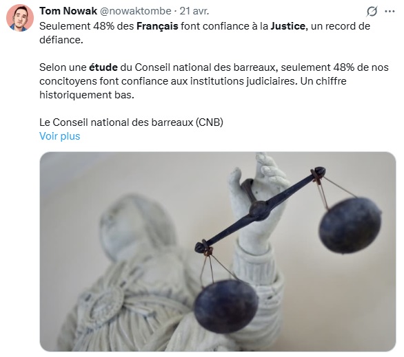 Près de sept Français sur dix estiment qu’elle « ne traite pas tout le monde de la même façon » et 68 % qu’elle « n’est pas assez sévère ». Ce constat d’une justice perçue comme lente, complexe et inéquitable dépasse largement les frontières nationales. Seules 9,7 % des personnes interrogées affirment avoir « tout à fait confiance » dans la justice, selon l’étude parue en octobre 2025.