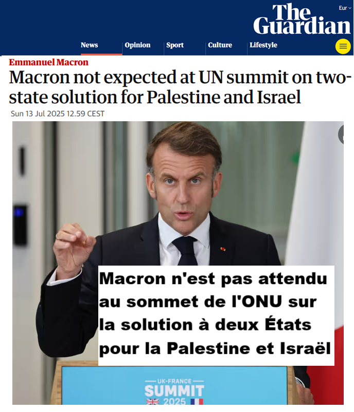 En avril, Emmanuel Macron avait déclaré que la France pourrait reconnaître un État palestinien « en juin », à l’occasion d’une conférence à New York, finalement reportée fin juillet. En mai, il avait réaffirmé cette intention. Un mois plus tard, c’est la douche froide et la reconnaissance de l’Etat palestinien par la France semble éternellement suspendue.