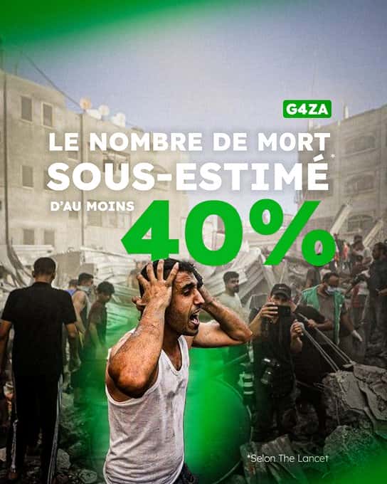 Depuis le début du génocide à Gaza jusqu’au 30 juin 2024, le ministère de la Santé de la bande de Gaza a fait état d’un bilan de 37 877 morts. Sur la même période, l’étude – publiée vendredi par la revue médicale The Lancet – estime que 64 260 palestiniens auraient perdu la vie, soit près de 3 % de la population de Gaza avant la guerre.