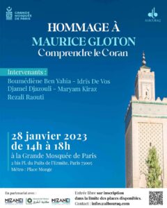 Auteur d’une traduction du Coran publiée aux éditions Albouraq, Maurice Gloton, mort le 28 janvier 2017, fera l’objet d’un hommage au cours d’une journée organisée sur le thème « Comprendre le Coran » ce 28 janvier à la Grande mosquée de Paris. Un événement organisé en partenariat avec Mizane.info.