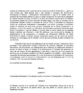 La Coordination contre le racisme et l’islamophobie a été dissoute sur décret ministériel prononcé par le président de la République sur le rapport du ministère de l’Intérieur. Des commentaires injurieux sur les réseaux sociaux et des déclarations de responsables locaux ont été épinglés pour justifier cette nouvelle dissolution.
