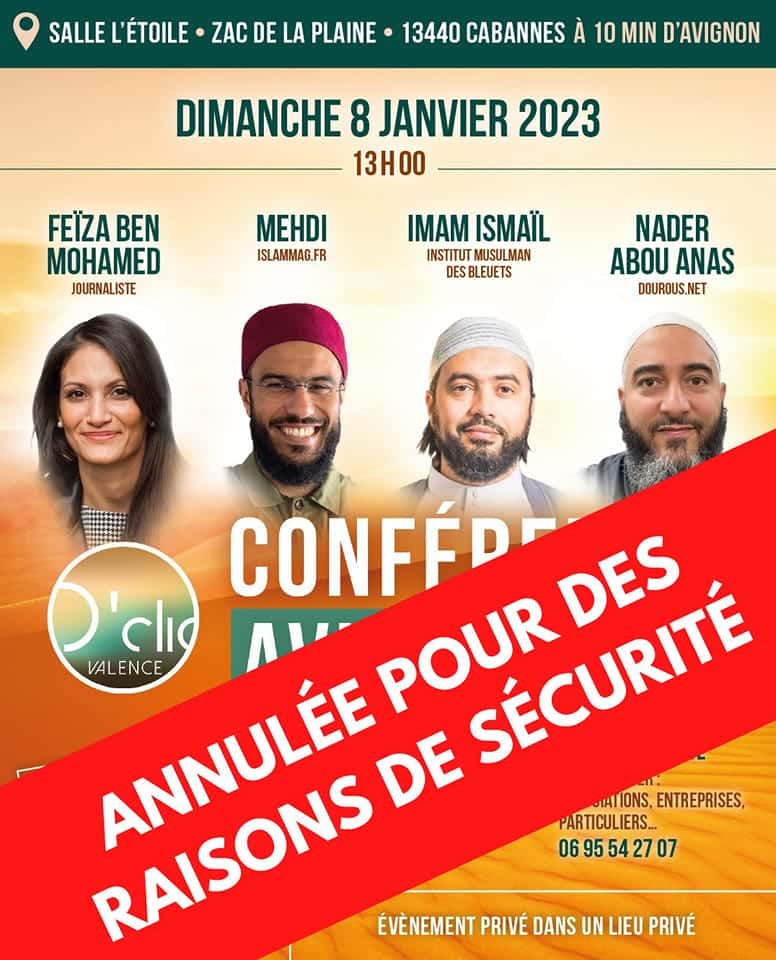 L’événement devait se tenir ce dimanche 5 mars à Brétigny-sur-Orge. Une salle de 900 personnes devait accueillir 5 prédicateurs musulmans invités par l’association Les Profs Studio. Le sujet de l’intervention « En route vers l’apprentissage » était consacré à l’éducation des enfants. « Enseigner une certaine vision de l’islam à des enfants pour former les musulmans de demain » selon le mot des organisateurs. Mais le public n’a pas pu y assister. Comme plusieurs autres conférences de même nature, des arrêtés municipaux se sont opposés à leur tenue. Sur Twitter, le maire de Brétigny-sur-Orge Nicolas Méary annonçait sa décision d’interdire l’événement au nom de « troubles graves à l’ordre public », justificatif brandi contre les 5 conférenciers qualifiés par l’élu de « prédicateurs et influenceurs islamistes ». « Après analyse juridique en lien avec le préfet et le ministère de l’Intérieur, et au vu des risques de troubles graves à l’ordre public, j’ai pris un arrêté interdisant cette manifestation » écrivait-il, appelant à « garantir la libre pratique religieuse, et notamment celle de nos concitoyens musulmans, et être fermes face au séparatisme. »Plusieurs conférences annulées