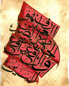 Ô cher ami ! Tu n’as pas encore atteint l’endroit où l’alphabet de l’amour est écrit pour toi. On aperçoit la trace de l’écriture de cet alphabet lorsque les lettres reliées (muttasal) deviennent des lettres déliées (munfasal). On retrouve la trace des premières dans Et Nous leur avons, certes, fait parvenir le Dire (Coran 28:51). Puis, la trace des dernières se retrouve dans Nous avons certes disposé les Signes (Coran 6:97, etc.).