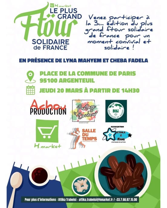 Après le succès des deux premières éditions, Hmarket relance, ce jeudi, « Le Plus Grand Ftour Solidaire de France ». L’an dernier, des centaines de bénévoles se sont mobilisés pour distribuer des milliers de repas aux personnes dans le besoin.