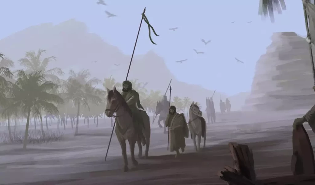 « Et pourquoi tirerions-nous au sort ? », répondirent-ils. « Abû Ayyûb est âgé, Ubayy est malade et il ne reste que nous trois ». « Commencez, vous trois, par Hims et lorsque vous serez rassurés sur l’état de son peuple, quittez-la en y laissant l’un de vous. Puis, que le second se dirige vers Damas tandis que l’autre ira en Palestine », répliqua ʿUmar. Les trois hommes se rendirent donc à Hims où fut laissé ʿUbâda Ibn As-Sâmit. Abû Ad-Dardâ’ se dirigea ensuite vers Damas, tandis que Muʿâdh Ibn Jabal partit en Palestine.