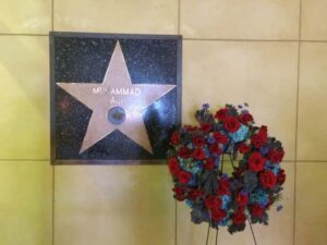 Entre temps, et c’est important de le souligner, Muhammad Ali quittera définitivement la Nation of Islam pour adhérer à l’Islam sunnite et traditionnelle en 1975 à la suite de la nouvelle direction religieuse du mouvement prise par Warith Deen Muhammad, le fils du célèbre Elijah Muhammad (décédé la même année). Malgré une sante déclinante, Ali continuera à œuvrer pour la paix via diverses actions de grande ampleur qu’il serait trop fastidieux d’énumérer ici. Il sera littéralement inondé de distinctions honorifiques pour l’ensemble de sa carrière dont celui de « Personnalité sportive du siècle » attribuée par la BBC ou encore la médaille de la paix « Otto Hahn » accordé par l’Organisation des Nations Unies « pour son engagement en faveur du mouvement américain contre la ségrégation et pour l’émancipation culturelle des Noirs à l’échelle mondiale ». On retiendra notamment l’épisode où obtenant son étoile sur Hollywood boulevard, alors que les étoiles des autres célébrités sont traditionnellement sur le sol du Walk of Fame, il refusera que la sienne le soit également se justifiant par ces mots forts :