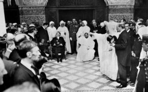 L’ordonnance royale du 24 février 1834 marque l’annexion officielle de l’Algérie par la France après la capitulation du dey d’Alger en 1830. Une étape historique qui inaugure une nouvelle époque dont l’écho résonne encore aujourd’hui. Autrefois envisagé comme l’Autre fantasmé et diabolisé, le Musulman devient la figure du dominé. Surtout, il devient une pièce, certes rapportée, de l’empire coloniale, transfuge de la République. Dans cette relation de l’islam à la France, les deux Guerres mondiales marquent un tournant clair. L’inclination « indigénophile ou islamophile du début du XXe siècle » des Français comme l’écrit Michel Renard (2) nourrit un intérêt réel pour l’islam et pour les musulmans ».