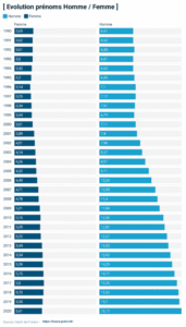 Combien de prénoms arabo-musulmans ont été donnés en France en 2020 ? A la lumière d’une étude de l’INSEE recoupée par régions, l’équipe du site Islam 2 France supervisée par Lotfi Ramdani avance le chiffre de 83 703 prénoms musulmans donnés en 2020. Un chiffre à comparer à l’ensemble des 713 273 prénoms recensés en France. Soit une baisse de 7% sur les trois dernières années. En 2017, 90 317 prénoms musulmans avait été donnés.