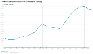 Autre élément intéressant, les prénoms à connotation musulmane ont diminué sous les gouvernements de gauche.