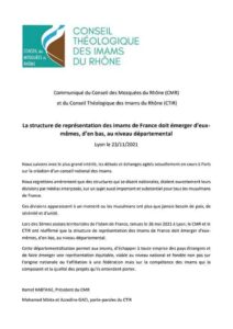 D’autres critiques ont été formulées par le Conseil théologique des imams du Rhône, sous la voix de Mohamed Minta, Azzedine Gaci et Kamal Kabtane, dénonçant conjointement le spectacle d’affrontement des fédérations nationales et réaffirmant l’exigence d’une représentation fondée sur la départementalisation du culte.